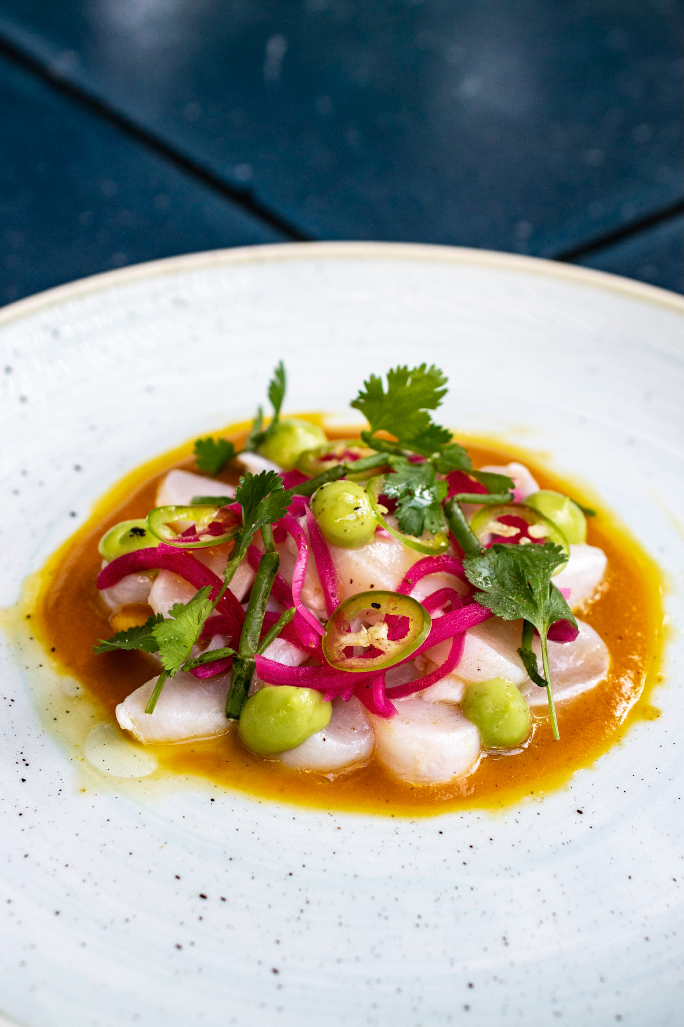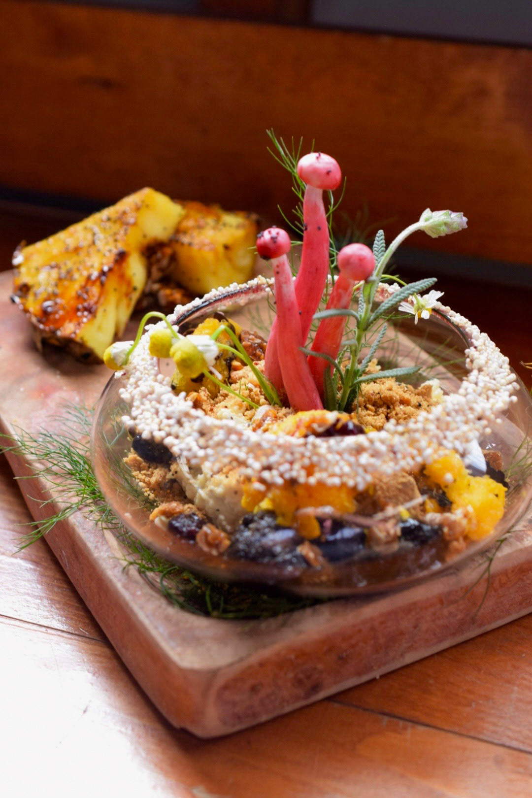 Abalone, white mole, and fennel root at Corazón de Tierra, Valle de Guadalupe, Mexico