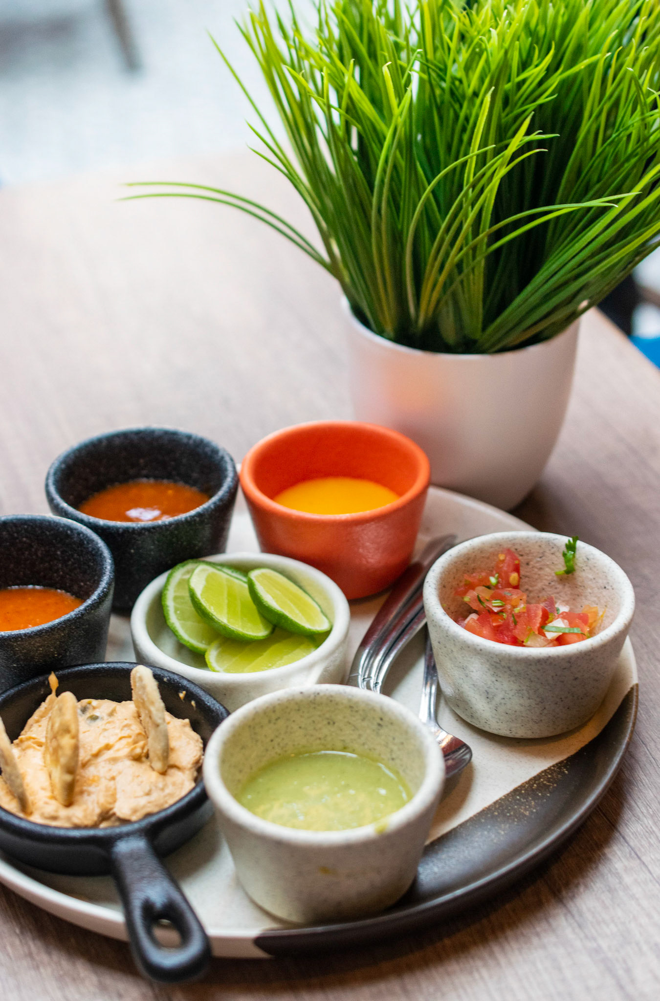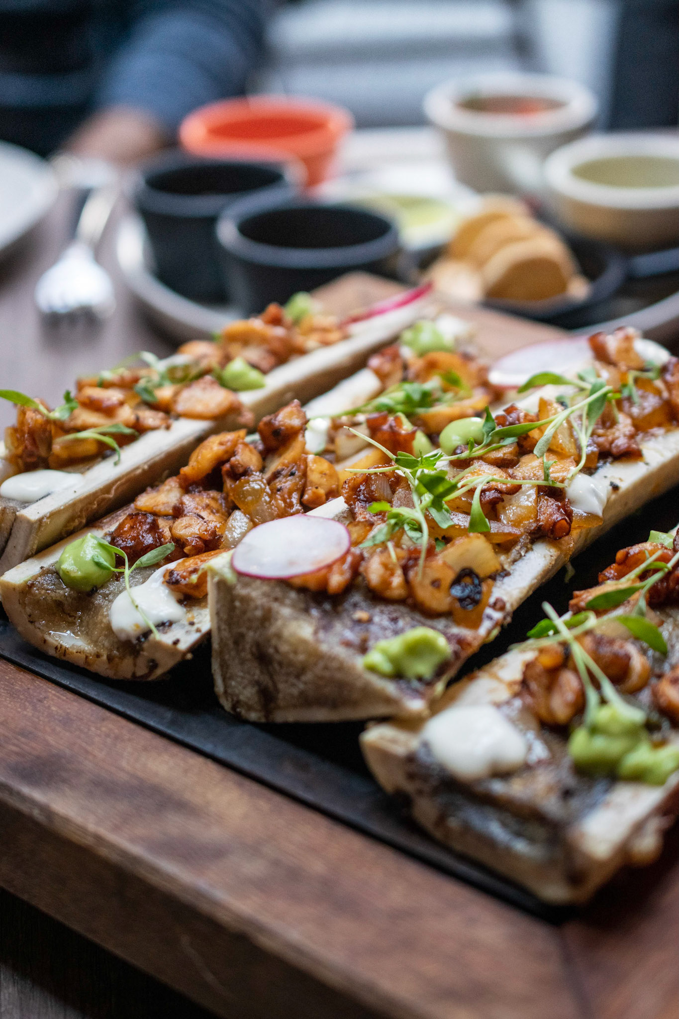 Bone marrow and blue corn tostadas at En Familia, San Diego, California